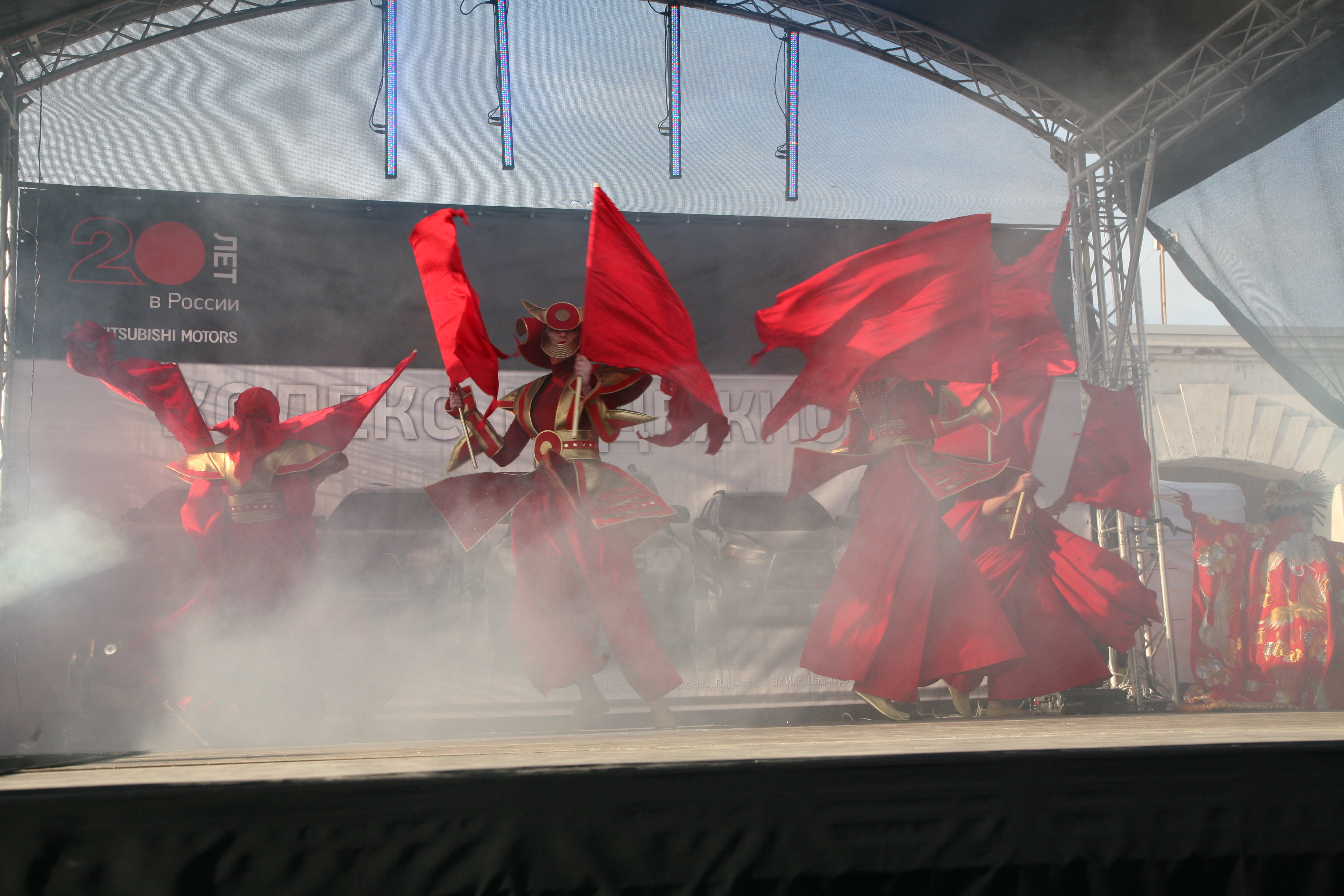 В шоу использованы подлинные японские церемониальные одеяния и доспехи самураев, а так же авторские костюмы